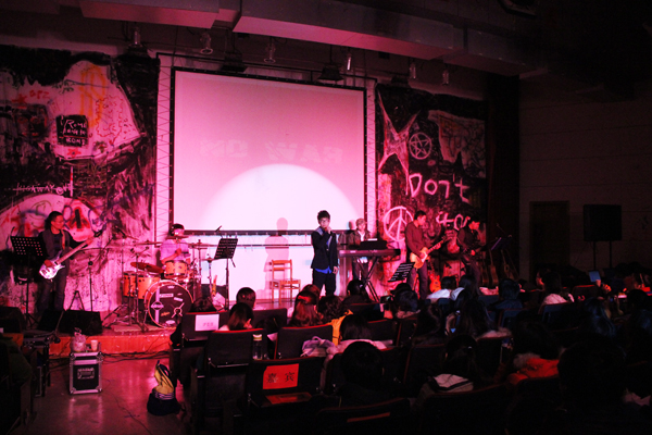 作为威尼斯官网为数不多的乐队之一,DGY乐队还未开唱,不大的西厅早已挤满了人,很多人因为来迟了没有座位而只能站在门口,并且一直坚持到最后。作为一位摇滚铁粉,黄文静直言“很享受”。“我非常喜欢摇滚乐,这是我第二次来感受这样的摇滚乐,他们的演唱会很轻松,很有内容。”上半年,她曾观看过一场由毕业生举办的音乐会,“那次演唱会给我很大的震撼,以前从没在学校感受过如此high的氛围,真的很希望能有更多的乐队举办像这样的演唱会。”