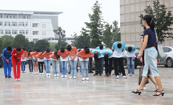9月10日早8点,30位学生身着统一服装,排成两列,静立在敬敷广场前,向每一位来上班的老师鞠躬敬礼,送上教师节早晨的祝福。与往年不同,今年的祝福没有鲜花,没有茶盏,连海报也是成员们自己手绘的。同学们用最朴实也最敬重的传统尊师礼仪,传递最诚挚的尊师之道。鞠躬敬礼活动结束后,校学生会成员还将手工绘制的贺卡送到老师手中,30份精致贺卡是学生们熬夜赶工做出来的,剪纸、设计、画图……每个人将祝福用娟秀的笔迹刻画在贺卡纸上。