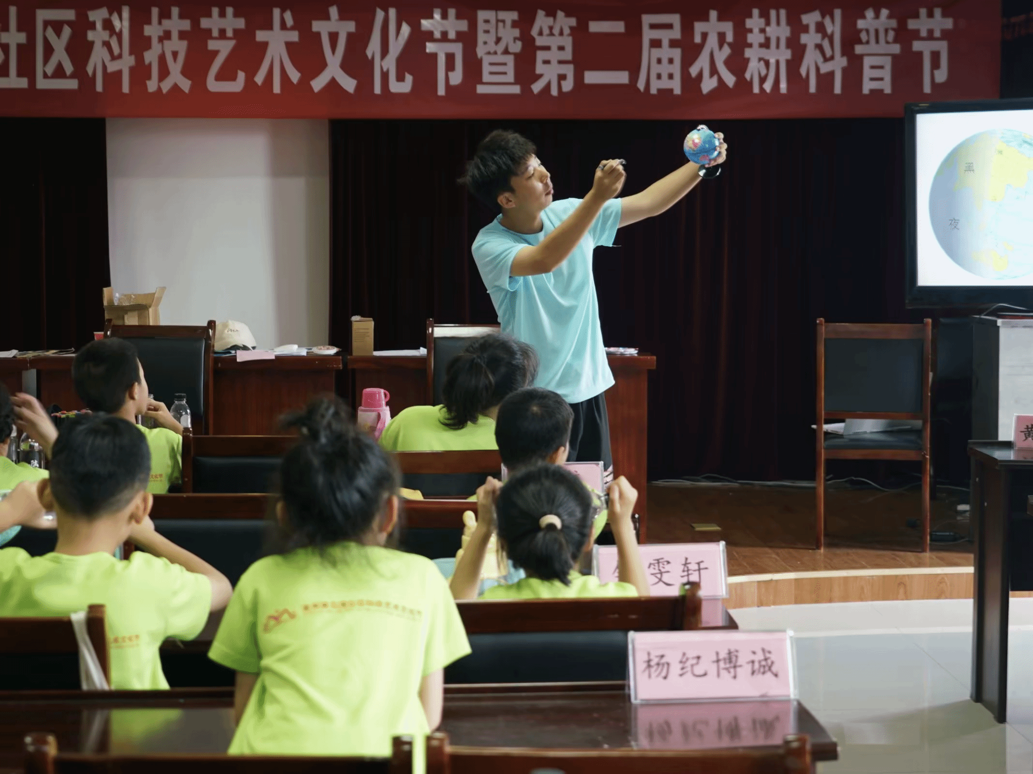 活动中,实践团成员开展了天文地理知识科普小课堂,向青少年们宣传我国科技发展成就的同时普及科学知识,激发广大青年学生的创新创造热情。实践团成员通过PPT讲解、视频播放、互动提问解答等方式,激发孩子们求知探索的心理,进一步去领略天文地理知识的无穷魅力,在仰望星空的同时脚踏实地,树立科学梦想,更好地为祖国的科学建设添砖加瓦。