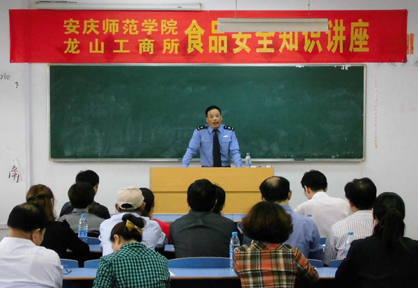 宜秀工商分局副局长王满生进行了授课。他以当前人民群众普遍关注的食品安全问题为主要内容,从近年来国内频频发生的食品安全事件说起,详细讲解了当前食品安全形势及应对策略,以及作为经营者应如何选择安全食品,如何正确认识食品安全问题等。