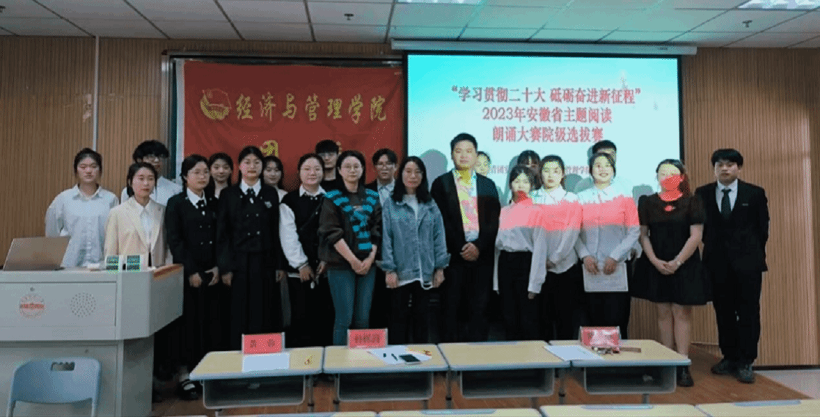 4月12日,经济与管理学院在M212举办“学习贯彻党的二十大 砥砺奋进新征程”2023年安徽省主题阅读朗诵大赛院级选拔赛,学院30余名学生参加选拔赛。学院团委负责教师、全体专职辅导员担任评委。