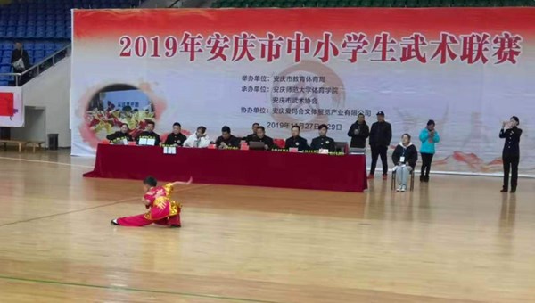 2019年11月27日-29日,安庆市中小学生武术联赛在安庆市体育馆举行。来自安庆市各市、县、区共32个代表队、665名运动员参加了43个个人项目、2个集体项目的角逐,最终产生44块金牌、42块银牌、45块铜牌,13个代表队获得“体育道德风尚奖”。体育学院武术专项老师王思乐应邀担任总裁判长。