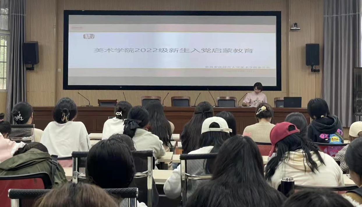近日,美术学院党委围绕2022级新生入党启蒙教育,分专业、分批次组织开展了主题鲜明、内容丰富、形式多样的系列活动,美术学院党委书记孙根华、党委副书记金忠良、学生党支部书记、新生辅导员、2022级全体新生参加了系列活动。