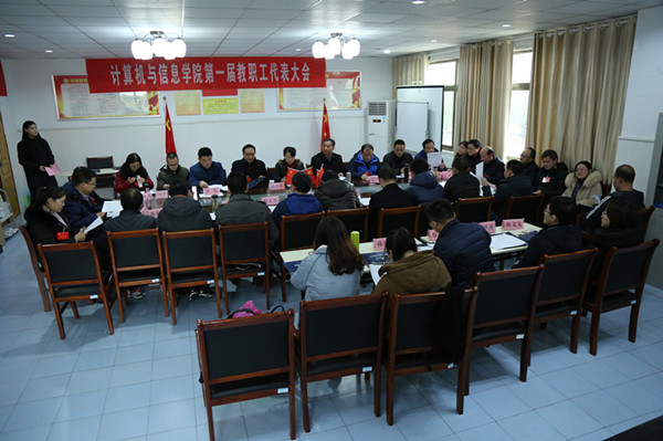 12月18日,计算机与信息学院第一届教职工代表大会在周转房二楼会议室举行。学院正式代表、特邀代表、列席代表出席了会议,开幕式由学院院长王一宾主持。