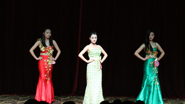 轻缓优雅的音乐响起,婀娜多姿的模特们身穿色彩缤纷的长裙缓缓向舞台中央走去,璀璨的灯光下,安师院东厅的舞台宛如一幅春天的画卷。