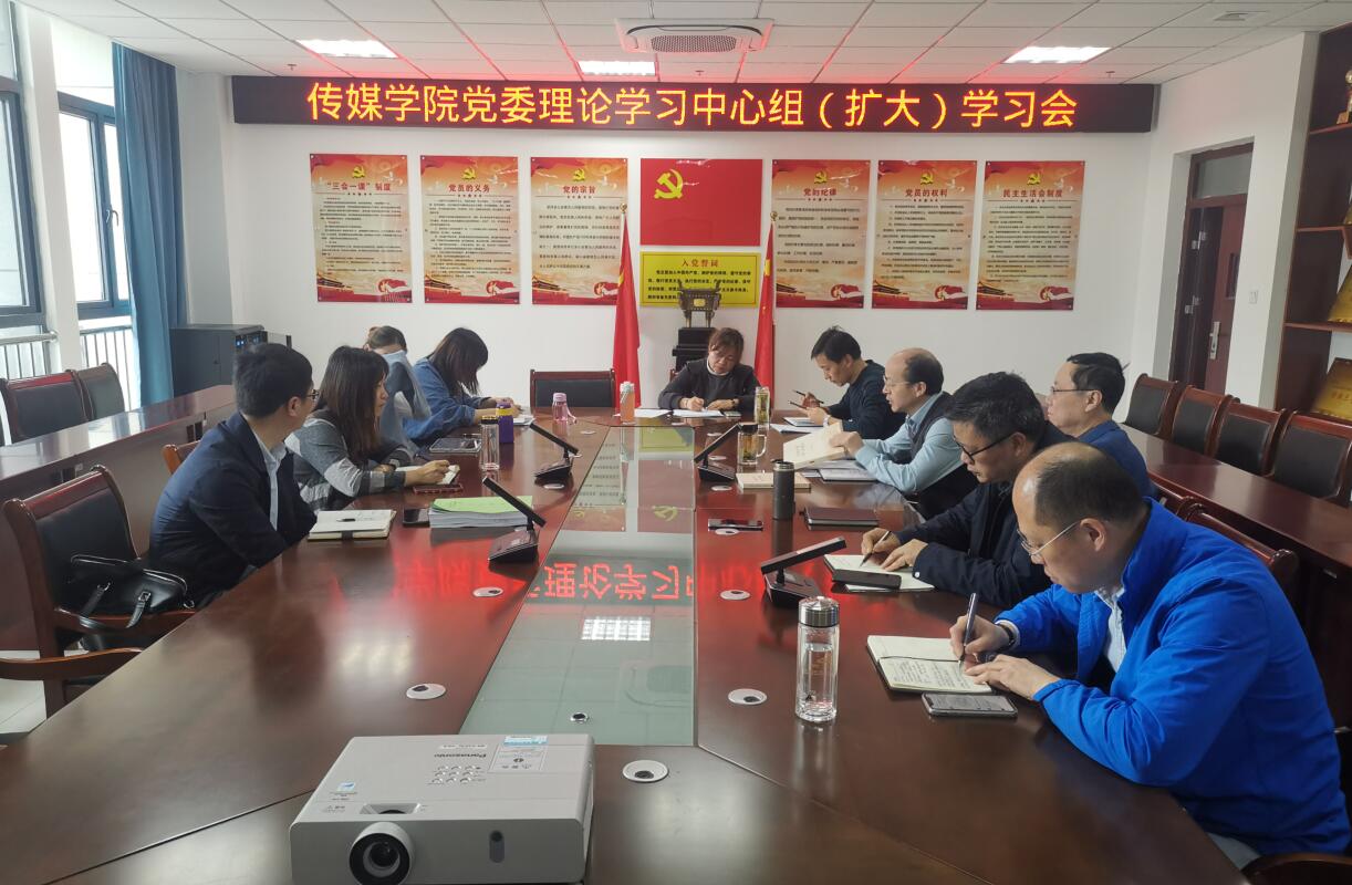 4月22日,传媒学院召开党委理论学习中心组(扩大)学习会,学院党政领导、党支部书记参加学习,会议由院党委书记韦长发主持。