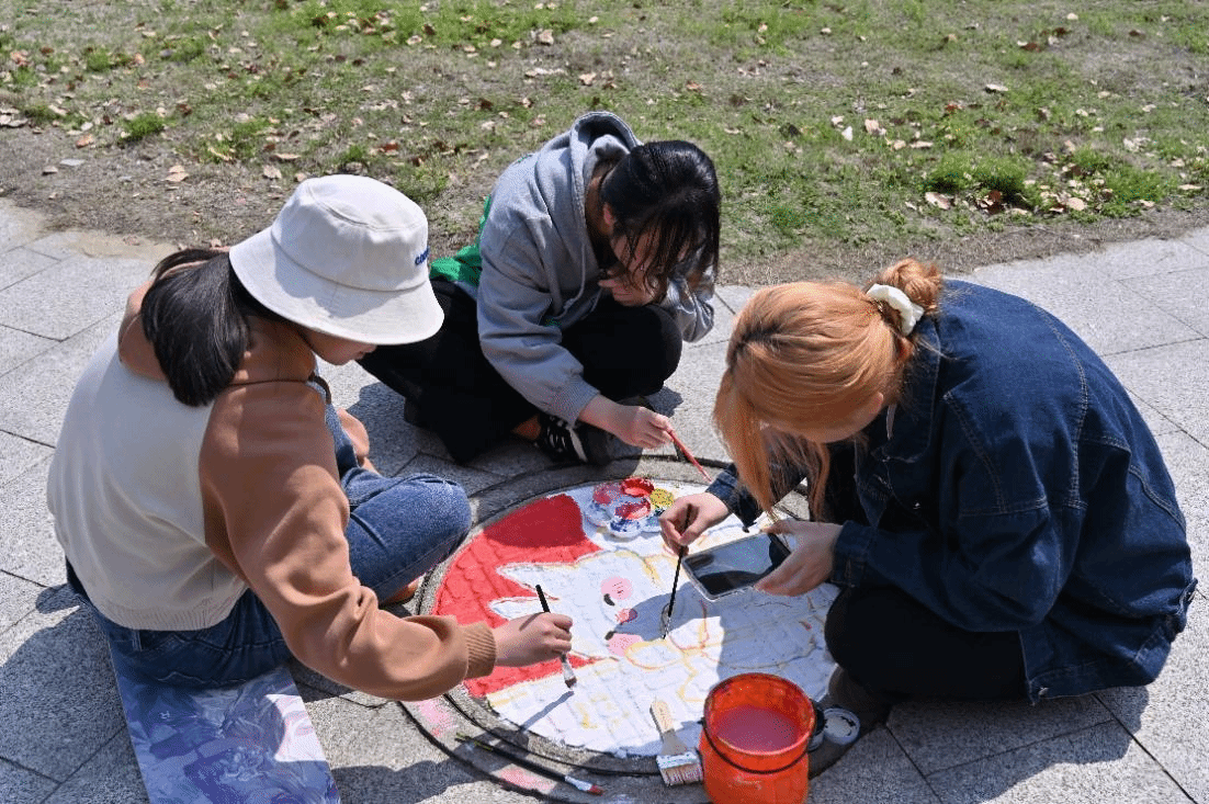 本次活动在培德桥南边至机械设计制造及其自动化工程实训中心中间思齐路举行。共有九个井盖,同学们分成九个团队,集体进行绘制。2022级新闻传播学专业魏云燕说:“此次活动不仅锻炼了我的绘画能力,还让我结识到了许多有共同爱好的小伙伴。”
