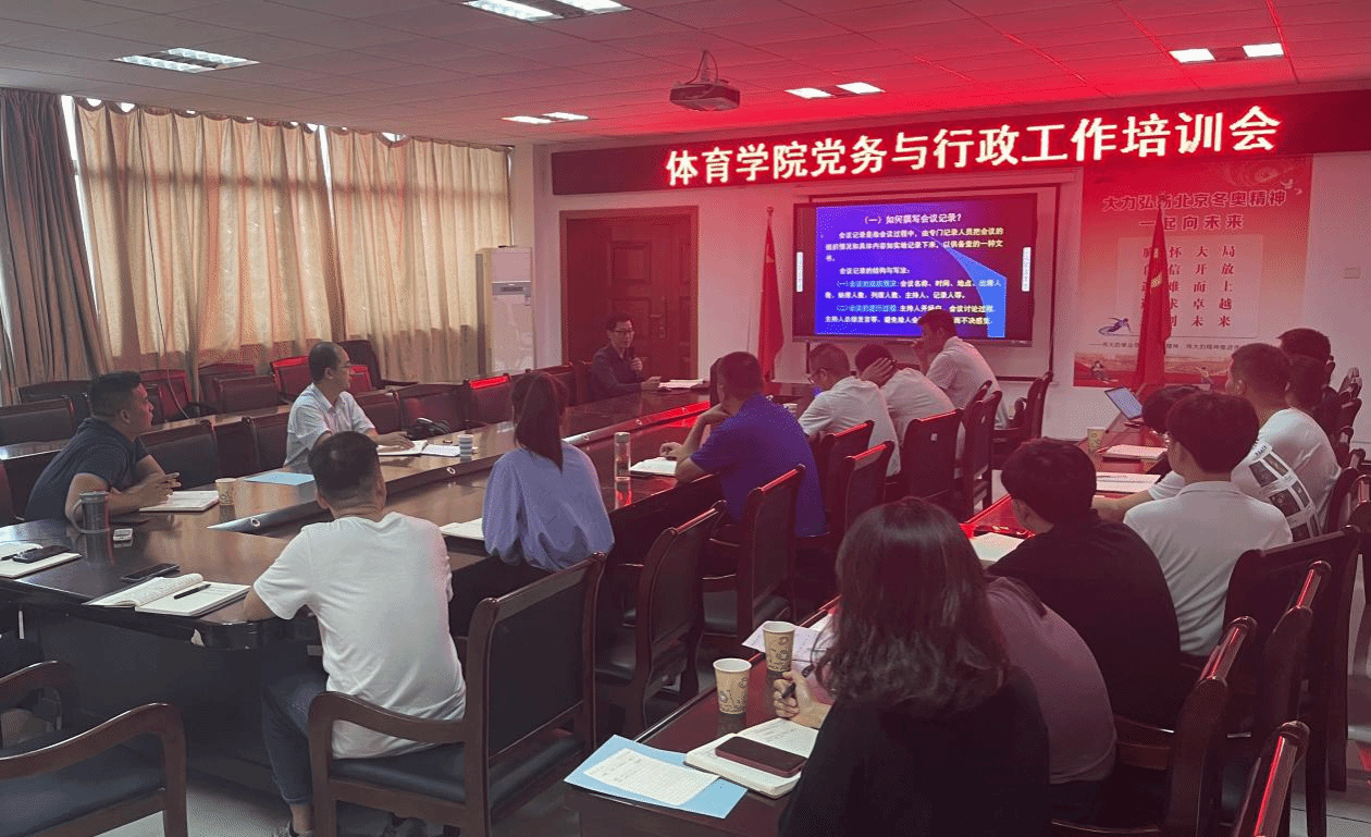 9月20日,体育学院举行党务与行政工作培训会。校党委办公室、校长办公室、法制办公室副主任吴晓峰应邀作主讲报告,学院党委副书记、纪委书记王玮主持培训会,党委秘书、各党支部书记、支部委员、纪委委员,教学、行政等科室教师近20名人参加培训会。