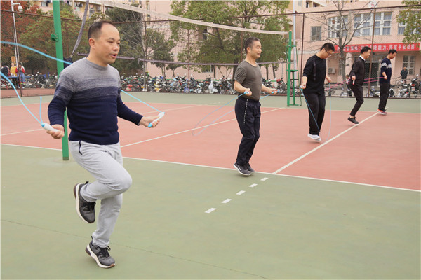 “预备,开始!”随着裁判的一声令下跳绳项目也开展了起来,该项目要求参赛人员在30秒的时间限制内跳绳,取次数多的为胜。随后进行的是踢毽子的项目,为了参加这项比赛,有不少老师还自备了“老棉鞋”,音乐学院的唐健辉老师就是其中之一,他表示:“这种鞋子的鞋面比较柔软,踢毽子会更好更稳。”在随后的比赛中他稳扎稳打获得了踢毽子项目男子组的第一名。