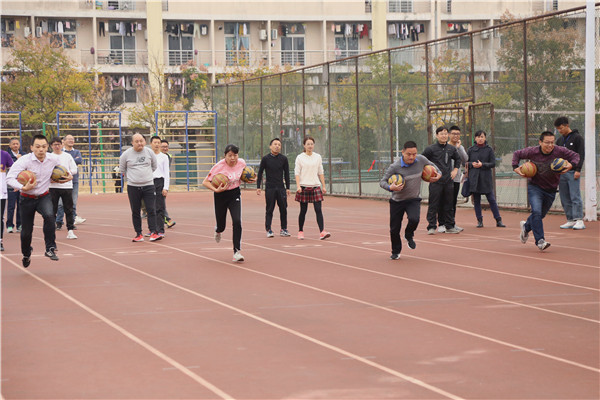 本次运动会有定点投篮、掷垒球、袋鼠跳、跳绳、托球跑、踢毽子、六人抱球接力跑以及两人三足8个项目,分别按照性别年龄将教工们分为男子、女子组和青年、中年、老年组进行比赛。迈开双脚与肩同宽、用腕部力量带动球体、瞄准投出,热门项目定点投篮拉开了本次比赛的序幕。