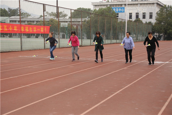 “一二,一二……”随着两人三足项目的进行,本次比赛也接近了尾声。据悉,本次游戏项目的比赛成绩将与即将举办的运动会竞赛项目成绩一同汇总来进行排名。“这次游戏项目比赛教工们的参与度很高,大家都很积极。举办这样的比赛主要是想让每位教工能在运动中检验自己的锻炼状况、体会健康运动的乐趣,同时促进教工们之间的交流和加强各学院之间的联系。”校工会副主席朱德权说。(文/学生记者 吴霞 图/学生记者 胡蝶 齐世冉 张俊田)