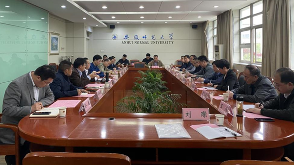 在安徽师范大学调研期间,该校发展规划处处长桑青松接待了陈世庆一行,并召开调研座谈会。座谈会上,双方就人才培养、专业建设、实验室建设、实践教学等方面进行了深入的交流,并希望进一步拓宽合作领域,促进共同发展,为振兴教师教育、培育优质教师人才贡献力量。随后,调研组实地考察了安徽师范大学法学院模拟法庭、新闻与传播学院实验实训中心、音乐学院音乐厅。