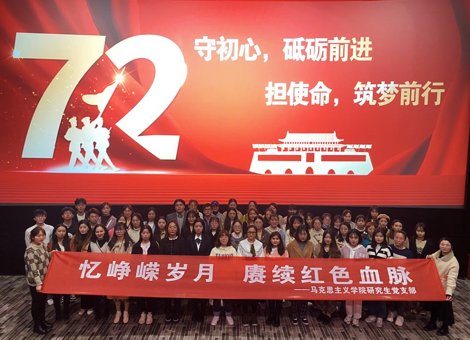 为深入贯彻党的十九届六中全会精神,切实用全会精神统一学生思想和行动,促进学生理论学习与社会实践相结合,11月20日,马克思主义学院研究生党支部组织中国特色社会主义理论研成员,开展“深入学习党的十九届六中全会精神”主题教育观影活动。此次活动由马克思主义学院研究生党支部书记带队,研究生党支部党员及入党积极分子60多名同学集体观看影片《长津湖》和《铁道英雄》。