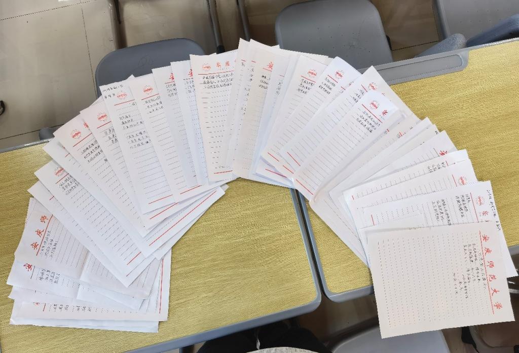 感悟党的百年征程、表明一心向党的决心、展望与党共创辉煌......二十余分钟里,安静的教室映射着埋头创作的学生,信纸渐渐被一份份“情书”填满。或是细腻温柔的情话,或是坚定铿锵的誓言,“花式表白”层出不穷,字里行间流露着学生们对党的爱意。