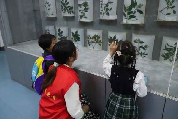 墨子巷幼儿园沿江分部大二班的小朋友们在志愿者的引导下有序地参观了生命科学学院的植物标本馆、动物标本馆和学生成果展示厅。小朋友们对眼前的各种动植物标本好奇不已,“这个是豹子!”,“不对,这个是老虎。”小朋友们你一言我一语,解说员和志愿者也在其中穿插知识问答环节,与小朋友分享有趣的动植物知识。墨子巷幼儿园沿江分部罗敏园长表示:“感谢校方前期辛苦的协调和安排,感谢有这么多大哥哥大姐姐的陪同和解说,孩子们不但欣赏了大学的美景,还学到不少知识,这次春游十分难忘。”