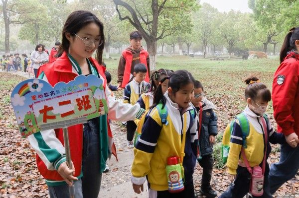 引领小朋友们前往不同目的地,志愿者和小朋友们大手牵小手,沿途带领小朋友欣赏学校美景。走到校园的紫藤花下,闻着花香,小朋友时不时地询问牵着他们小手的志愿者:“姐姐,这是什么花呀,好香!”……,面对小朋友们的诸多疑问,计算机科学与技术专业2020(3)班的郭海燕耐心地为他们解答。作为预备党员,这是郭海燕第一次参加党日活动,她说:“小朋友们对未知充满好奇,希望小朋友在我的解释下,能够更加热爱大自然!小朋友很可爱,此次志愿服务也让我收获不少欢乐。”
