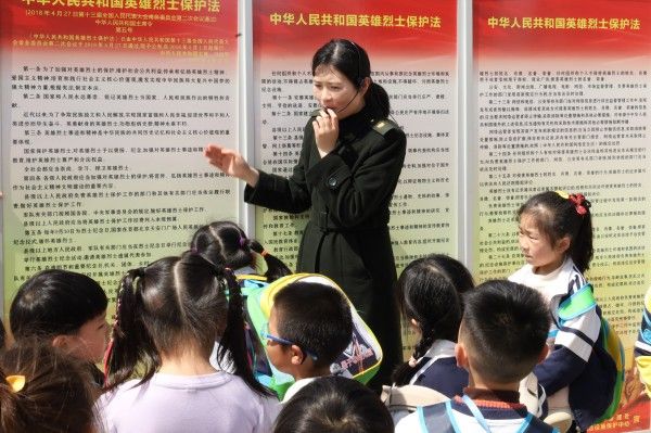 在教学楼广场,计算机与信息学院物联网工程党支部正在开展“英雄烈士保护法宣传暨英雄事迹宣讲展示活动”,小朋友们路过此处,也兴趣十足的上前参加,他们有的围在宣讲员旁边聆听讲解,有的跑到展板前了解英雄事迹,从小激发小朋友爱党爱国情怀,为此次的党日活动增加了红色赋值。