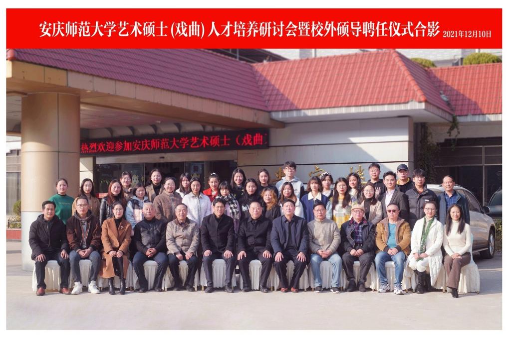 12月10日,黄梅剧艺术学院在皖源国际大酒店召开艺术硕士(戏曲)人才培养研讨会暨校外硕导聘任仪式。党委研究生工作部部长、研究生院院长、学科建设处处长江贵生出席会议并讲话。安庆市委宣传部常务副部长刘春旺,安徽省黄梅戏剧院国家一级作曲陈精根,安徽艺术学院戏剧影视系教授周爱宝,安徽省舞台美术学会副会长蔡欣平、秘书长蔡燕平,安庆市黄梅戏(地方戏曲)研究院国家一级编剧何成结,安徽黄梅戏艺术职业学院国家一级导演汪静,安庆再芬黄梅艺术剧院国家一级演员吴美莲、余淑华等校外硕士生导师出席聘任仪式并作交流发言。黄梅剧艺术学院党政班子及研究生秘书,音乐学院、美术学院分管领导及研究生秘书,艺术硕士(戏曲)专业学位研究生代表参加了会议,会议由黄梅剧艺术学院执行院长金根山主持。