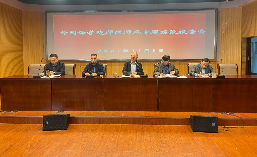 11月3日下午,外国语学院举行师德师风专项建设报告会,学院全体教职工参加会议,报告会由党委书记李亦亮主持。