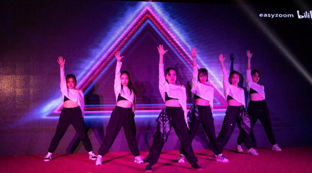 甩头、扭腰、转圈……大学生舞蹈协会成员干脆利落的舞姿伴随着《你要跳舞吗》的动感音乐燃爆全场,观众纷纷挥舞起手中发光的应援棒,跟着伴奏大声哼唱着“你你你你要跳舞吗”。协会其他同学也在音乐间隙插入队伍,大家整齐划一的舞步把现场气氛推到高潮。