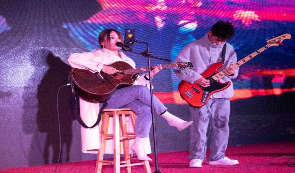 随后,舞蹈串烧、吉他弹唱、古典舞等多个节目精彩纷呈。聚光灯随着音乐起伏不断变换,台下欢呼声、鼓掌声不断,观众手中挥舞着应援棒,点点星光汇成了一片星海。