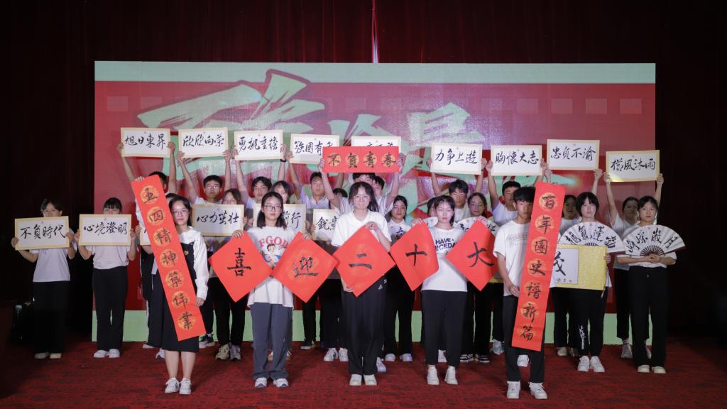 “五四精神筑伟业,百年团史谱新篇”,大学生书画协会现场书写对联,表达了青年敏学笃行、勇挑重担、强国有我、不负时代的铮铮誓言;在《有我》合唱中,大学生电子琴爱好者协会成员歌颂化作光的“炬火”,庆祝中国共产主义青年团成立100周年;大学生朗诵协会的《青春中国》用慷慨激昂的诗朗诵,述说了先辈们英勇悲壮的奋斗历程和青年们热血奋进的爱国情怀;“我们同住一个价,我们同在蓝天下。伸出你的手我的手,把所有美丽还给自然。”结合手语舞,大学生绿源环境保护协会带来的会歌《同在蓝天下》,表达了人与自然和谐共生的美好希冀。
