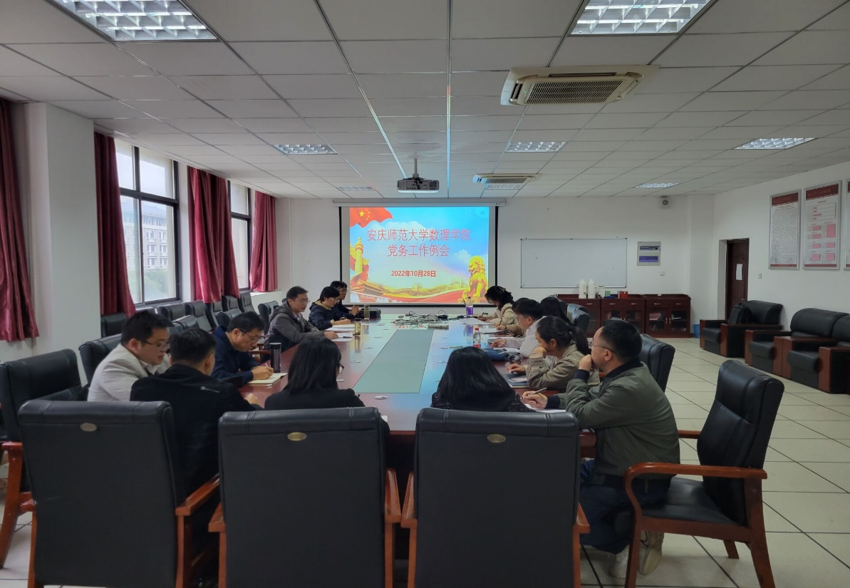 10月28日,数理学院在307会议室召开党务工作例会,会议由学院党委书记陆健主持,学院班子成员和各党支部书记参加会议。