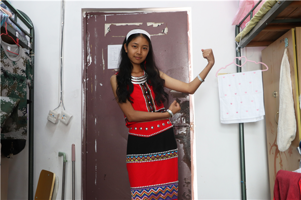 项圈、手镯、耳饰·····桌子上摆满了一件件具有佤族特色的小物品。“民族服饰对我来说,是家乡的印记。”英语师范专业2019(5)班的赵芊芊来自云南省临沧市沧源佤族自治县,她说:“我很喜欢佤族服饰,穿戴这些饰品来到学校,也是为了展现一下我们的民族特色,希望大家可以喜欢我们少数民族的文化。”赵芊芊介绍,她的家乡还有许多美味小吃和有趣游戏,希望有机会可以邀请同学一起去品尝体验,她还打算教室友一些佤语和民族舞蹈,分享独特的家乡文化。