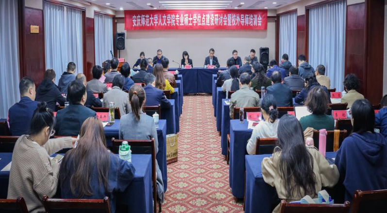 11月13日,人文学院专业硕士学位点建设研讨会暨校外导师培训会在安庆市举行。会议由人文学院党委书记张红飞主持,校党委研究生工作部部长、研究生院院长华秀梅,发展规划处(学科建设处)副处长汪超,国际交流与合作处副处长涂王贝,外国语学院副院长黄全灿以及人文学院党政班子成员、校外导师、校内导师代表、研究生代表共50余人参加了会议。