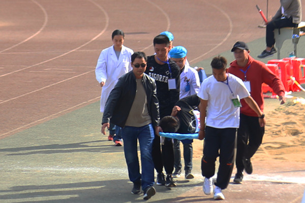 “从操场上有学生,到操场上走完人,这就是我们的工作时间。”校医院医护人员任静介绍,虽然是有些夸大的说法,但一天10小时的工作量是有的。“每次比赛前、或者是在比赛中,一旦发现哪位选手状态不对,我们会立马上去查看、治疗。”任静说,他们不仅准备了常规的保健药品,还为预防外伤等突发情况专门配备了止痛和消毒的相关药品,一些严重的疾病也会立刻由急救车及时送医,全方位为选手们的安全保驾护航。“只要情况一有不对,我们就会立刻‘出手’。”