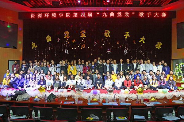 “雨下整夜我的爱溢出就像雨水,院子落叶跟我的思念厚厚一叠……”灯光暗下,曼妙乐曲在夜晚的东厅内缓缓响起。11月10日晚,资源环境学院于逸夫图书馆东报告厅举办了第四届“九曲霓裳”歌手大赛。三百余名观众到达现场欣赏这场视听盛宴,报告厅内座无虚席。