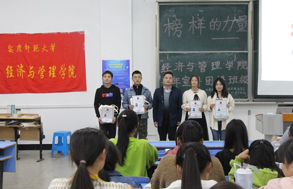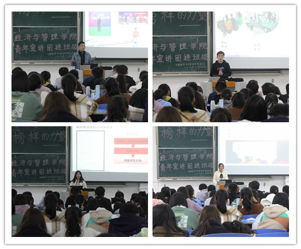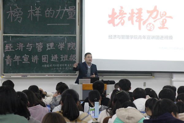 为诠释榜样力量,引领大学生成长。11月14日,由经济与管理学院举办的先进典型宣讲会在文溯楼208教室隆重举行。此次宣讲会邀请到李忠钢、黄帅、陈兴枝、王兰4位优秀同学分享经验,200余名来自2019级经济与管理学院各专业的新同学们聆听了报告会。学院党委副书记周毅等参加活动。