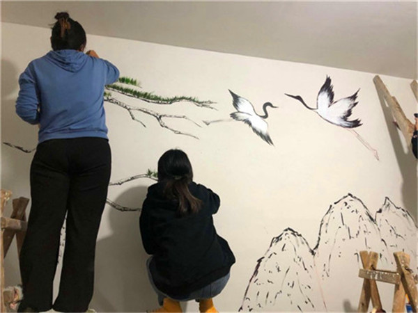 粉笔打框、线条定型、颜料调配……25名学生刚分好工就马不停蹄地工作起来。“本来经过曲折的山路还有点晕,但村民的热烈欢迎让我们的情绪都高涨起来,顿时干劲十足。”环境设计专业2019级的陈奕灵说,很高兴自己可以为当地的乡村文化建设贡献一份力量。