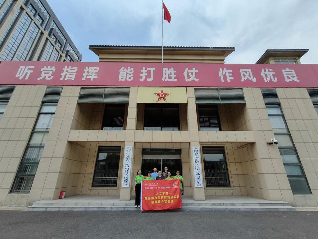 聆听一堂深刻思辨的国防教育课,承担起吾辈强国复兴的使命担当;开展一次地方国防教育进校园实际调研,探索把国防教育融入青少年成长的有效途径;体验一趟爱国主义教育基地之旅,在心底深埋爱国报国的种子……为积极响应“全民国防教育”的号召,近日,37000cm威尼斯人文学院“戎笔双全时代少年——国防教育进校园”实践团赴芜湖市开展走访调研。