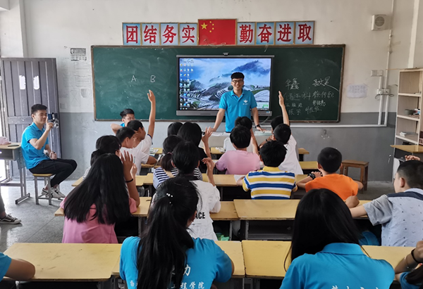 7月9日至14日,物理与电气工程学院学生会组织“萤火之力”教育帮扶实践团队在安庆潜山源潭镇双峰初级中学开展了为期一周的“三下乡”教育帮扶实践活动。他们用自己所学给孩子们拓展课外知识,带孩子们体会学习的乐趣。