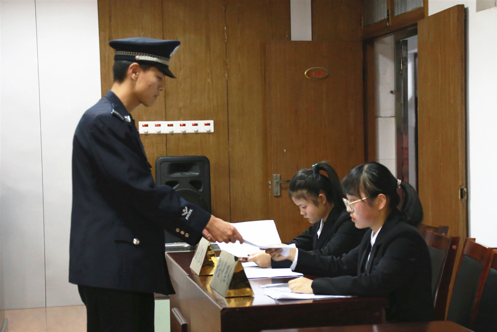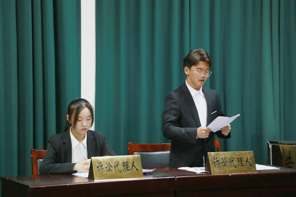 “穿上法警服,站在法庭之上,面对国徽我肃然起敬。”在前两场模拟法庭中扮演法警的法学专业2020(1)班的崔杰说,他刚开始学习法律,这是他第一次近距离接触法庭。通过这次当法警,在庭审流程和双方辩护过程中了解了很多法学术语,对法律及其运行有了更深入的体验。