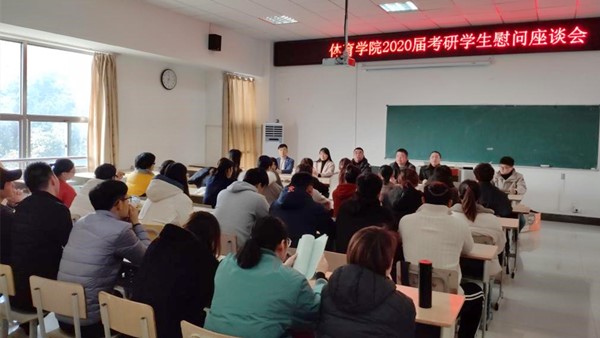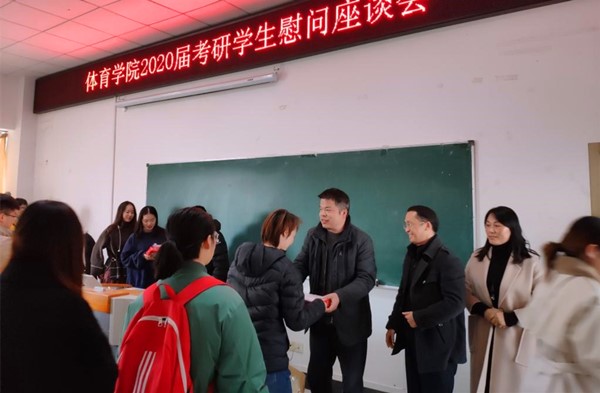 为坚定考研学生信心,引导学生为考研做好充分准备,积极面对考研。12月16日中午,体育学院在多媒体教室召开了2020年研究生考试考前动员会暨慰问活动。体育学院党委书记王开友、院长章翔、副院长林秋菊出席会议,党委副书记高栋梁主持会议,毕业班辅导员和全体考研学生参加了动员大会和慰问活动。