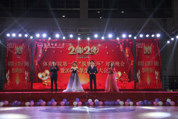 12月10日晚,体育学院第一届“筑梦五环”迎新晚会暨2019年表彰大会在龙山校区篮球馆举办。学生处处长夏建华、校团委副书记赵丽丽、学院党委书记王开友、副院长林秋菊、副书记高栋梁等陪同600余名学生一起观看了晚会。