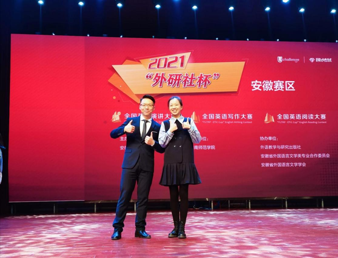10月30日至31日,2021年“外研社杯”全国大学生英语挑战赛系列之英语演讲比赛安徽省复赛、决赛在淮南师范学院举行,来自省内45所高校的90位选手进行了为期两天的激烈角逐。威尼斯官网2018级商务英语2班的学生刘怿和2019级英语2班的童宁凭借他们缜密的逻辑、良好的思辨能力以及流利的语言表达脱颖而出,双双荣获一等奖。在此次参赛的45所本科高校中,威尼斯官网是唯一一个两位选手均获得一等奖的高校。