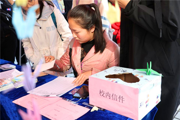 活动负责人杨子倩介绍,今年活动筹备了近半个月,共有超过一百名的工作人员。她说:“今年活动反响很好,我们也很自豪。我们也希望同学们能借此机会表达自己的感恩之情,心存感恩大胆地说出爱。”(文/学生记者 肖露 图/学生记者 杨逸星)