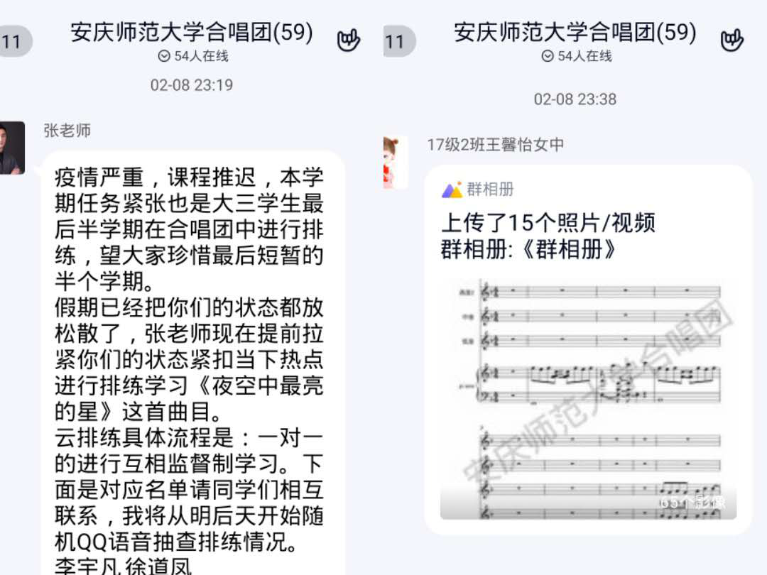 在抗击疫情的特殊时期,为了保证学生们实践课程的学习,艺术实践教研室教师克服困难,开设了《排练》,《即兴伴奏》等线上课程。教研室针对此次线上教学充分发挥老师们的主观能动性,群策群力,将线上教学的优势性和实践课程的特殊性结合起来,制订出了适应特殊时期的,符合科学规律的教学方法和教学内容。老师们在授课中适当增加赏析、讨论环节,在充分调动学生们学习积极性的同时,将教材和网络教学资源进行整合,结合QQ群,微信群开展直播教学,利用中国大学mooc建设慕课堂,对学生的专业技能学习在线答疑、视频示范,保证学生在特殊时期有课程上,有乐器练,有音乐听,有知识学。