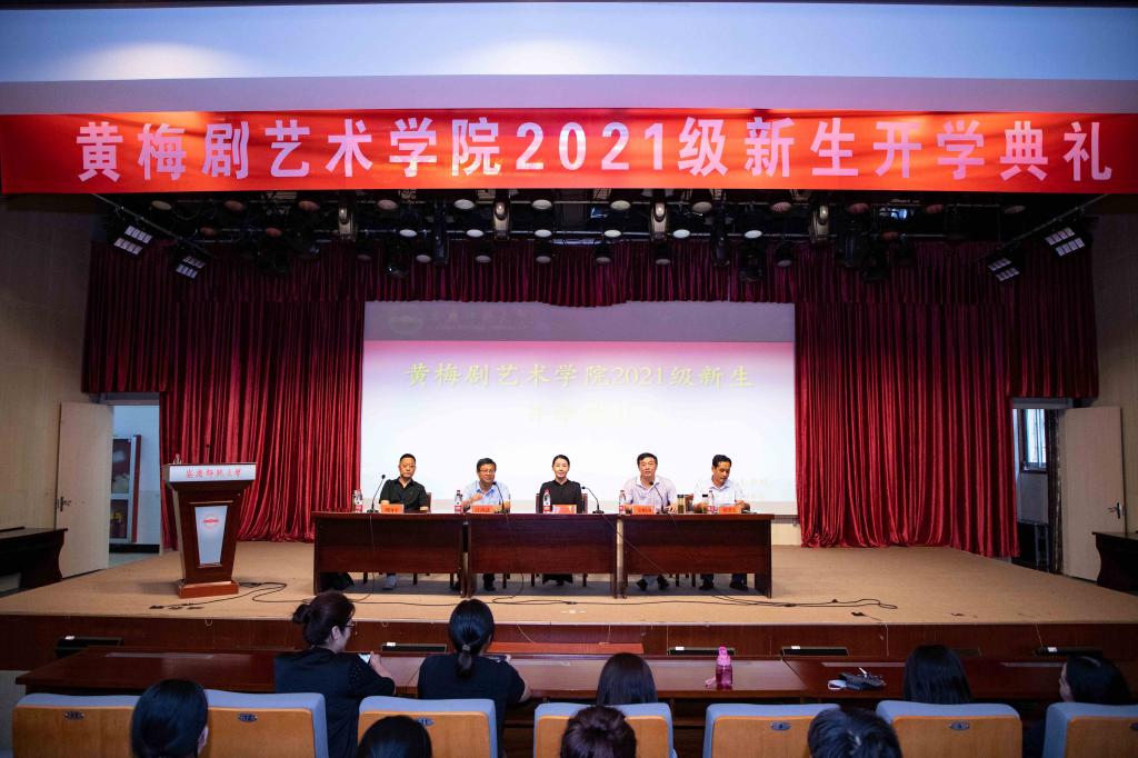9月18日下午,黄梅剧艺术学院2021级新生开学典礼在菱湖校区图书馆报告厅举行。中国戏剧家协会副主席、安徽省戏剧家协会主席、安徽省文联副主席、安庆市文联主席、黄梅剧艺术学院院长韩再芬,黄梅剧艺术学院执行院长金根山、直属党支部书记汪博武、副院长储著炎出席典礼。学院教师代表、行政管理人员以及2021级全体本科和研究生新生参加典礼。