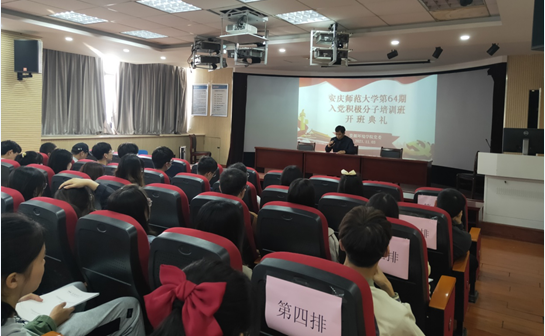 为深入贯彻《中国共产党章程》,落实好党员发展培训工作,11月3日下午,资源环境学院举行校第64期入党积极分子培训班开班典礼。院党委副书记刘燕杰出席了开班典礼,培训班班主任及第64期入党积极分子全体培训学员参加仪式。