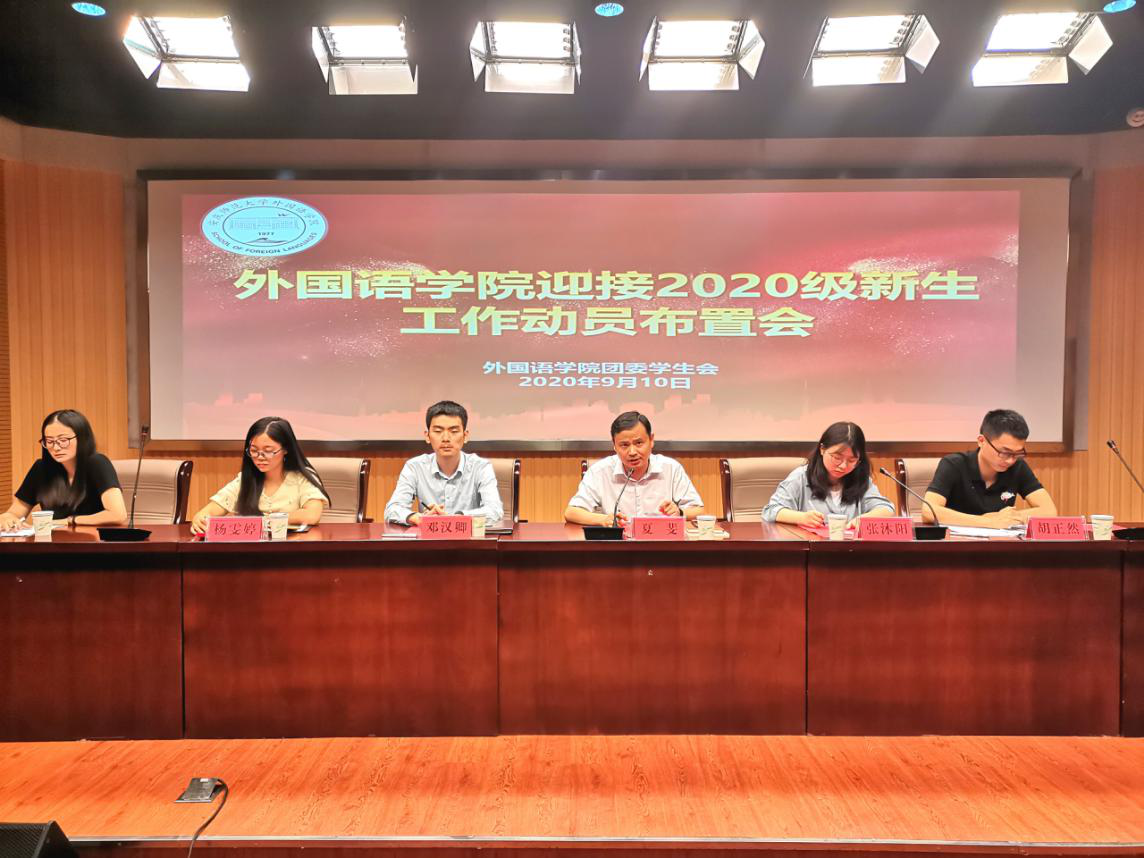 为确保迎新工作顺利进行,9月10日下午,外国语学院召开2020年迎新工作动员布置会。学院党委副书记夏斐、学工组全体老师出席会议,团委学生会全体成员、迎新志愿服务队代表参加会议。