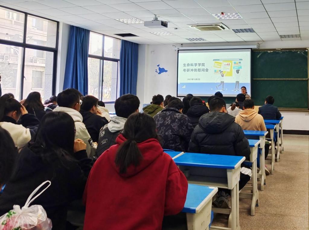 “天道酬勤,一战成硕”。为进一步做好考研推动及服务工作,12月2日,生命科学学院于G101教室召开考研学生慰问会。学院党委副书记张辉、毕业班辅导员、2022届考研学生共100余人参加了此次慰问会。