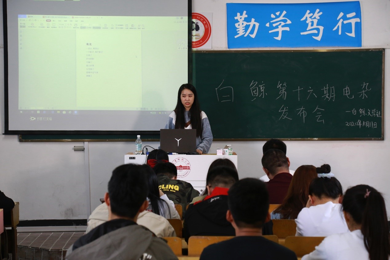 10月11日,白鲸文学社在菱湖校区举行了第十六期电子杂志发布会。白鲸文学社主要负责人和本次的投稿作者等二十余人参加了发布会。