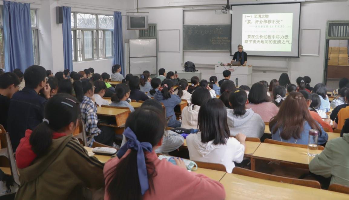 10月14日,大学生茶文化研究社在威尼斯官网菱湖校区举办了茶文化知识讲座。此次讲座由人文学院魏远征教授主讲,人文学院100余名学生共同聆听了此次讲座。