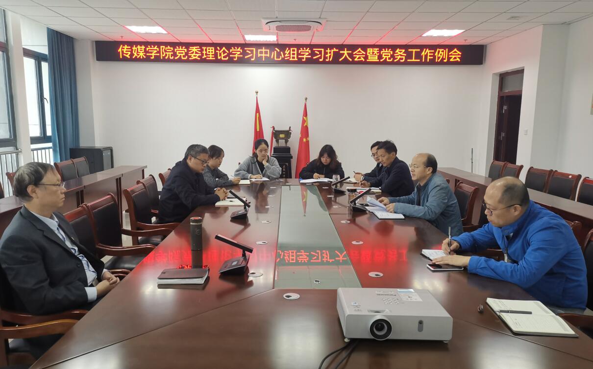 10月11日,传媒学院召开党委理论学习中心组学习(扩大)会暨党务工作例会,学院党政领导、党委委员和各党支部书记参加会议。会议由学院党委书记韦长发主持。