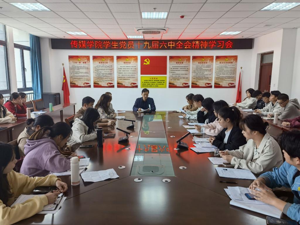 11月17日,传媒学院召开学生党员十九届六中全会精神学习会,学习贯彻党的十九届六中全会精神。学院党委副书记张万茂、学生党支部书记、全体学生党员和部分发展对象参加了会议。会议由学院党委副书记张万茂主持。