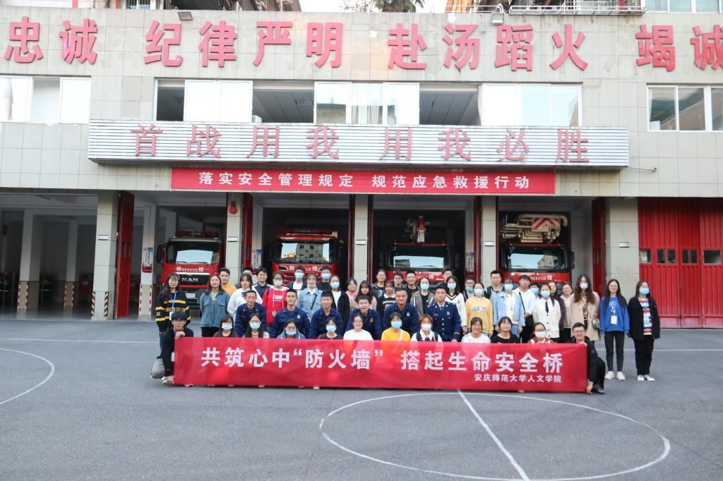 为了进一步提高学生的消防安全意识,提升学校消防安全水平,11月15日,人文学院组织学生走进安庆市消防支队特勤中队,体验消防生活。本次实践活动主题为“共筑心中‘防火墙’,搭起生命安全桥。”由人文学院学生会生活服务及权益维护部主办,团委文体艺术中心协办,2020级各班班长、治保委员以及班级寝室长代表参加。